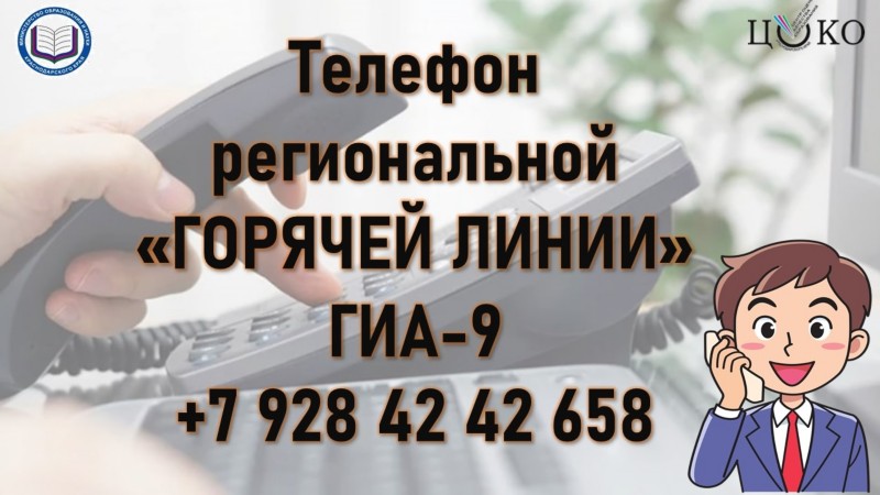 Телефон региональной "горячей линии" ГИА-9: 8928-42-42-658
