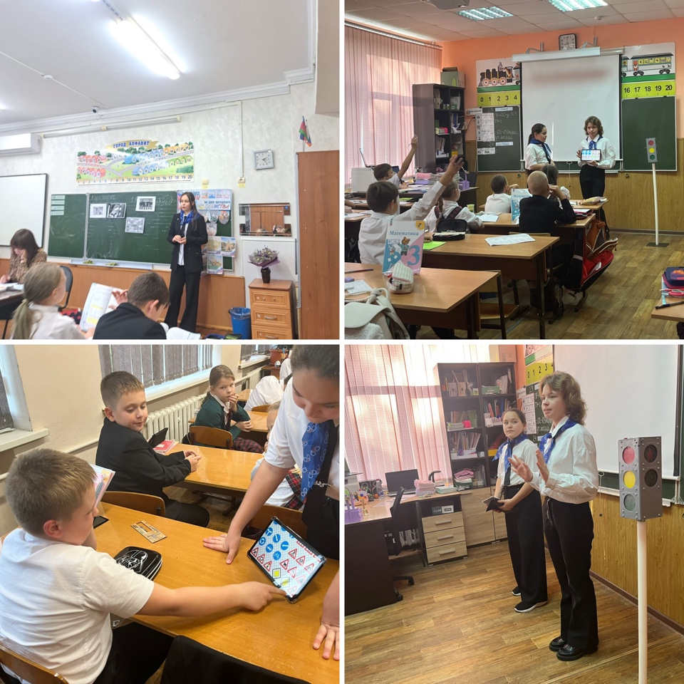 с 23 по 27 сентября проходила неделя безопасности дорожного движения. Учащиеся начальной школы провели занятия на оборудованной площадке и в кабинете безопасности дорожного движения. Во всех классах проведены беседы по правилам дорожного движения.