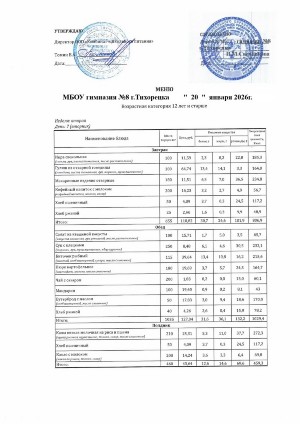 Меню 20.01.2026г.