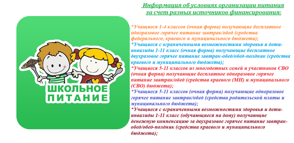 1.2 Информация об условиях организации питания за счет разных источников финансирования: