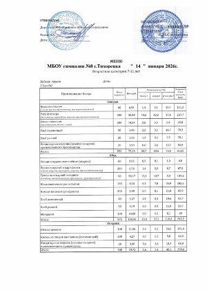 Меню 14.01.2026г.